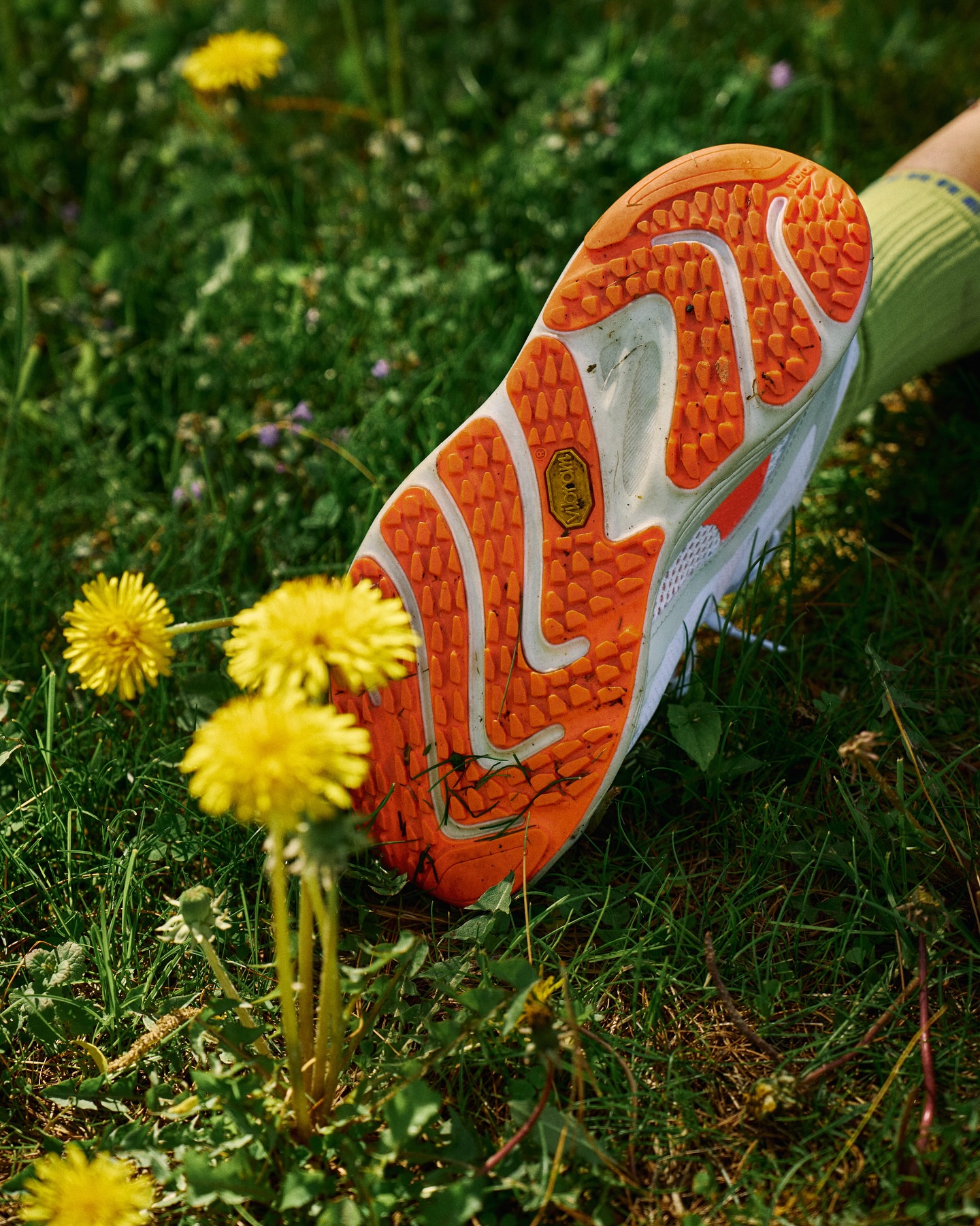 La semelle extérieure (Vibram Xs Trek Evo) combinée à la technologie Flex Connect permet une adhérence et une adaptation au terrain parfaite. Les crampons sont courts, évidemment utiles sur terrains secs.