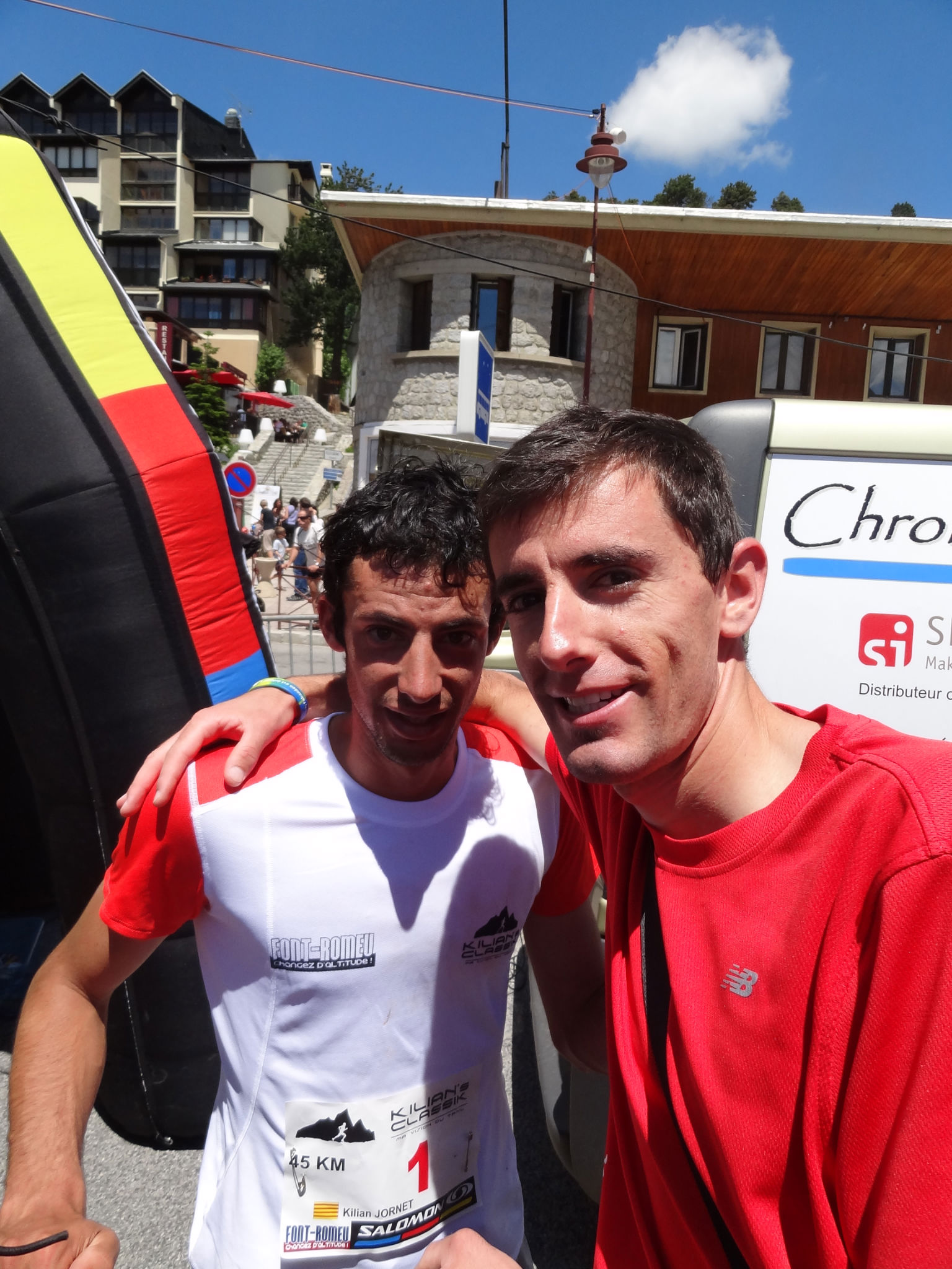 Quand Kilian est sur le point d’arriver, la foule s’amasse le long de la ligne d’arrivée. Je suis derrière les barrières après la ligne, je ne devrais pas le manquer ! Il finira 1er ex-aequo avec 2 coéquipiers du team Salomon. A peine arrivé, il est sollicité pour les autographes et les photos… quelle patience il a ! Il fait ça avec décontraction, et ne manquera pas un enfant venu lui prêter un stylo pour signer. J’attendrais bien 20min pour avoir ma photo avec lui. Adorable. Les plus cyniques diront que c’est son job, sa course, mais il fait ça avec le sourire et un naturel qui ne le quitte pas, on sent la personne profondément humaine, qui aime ce qu’il fait.