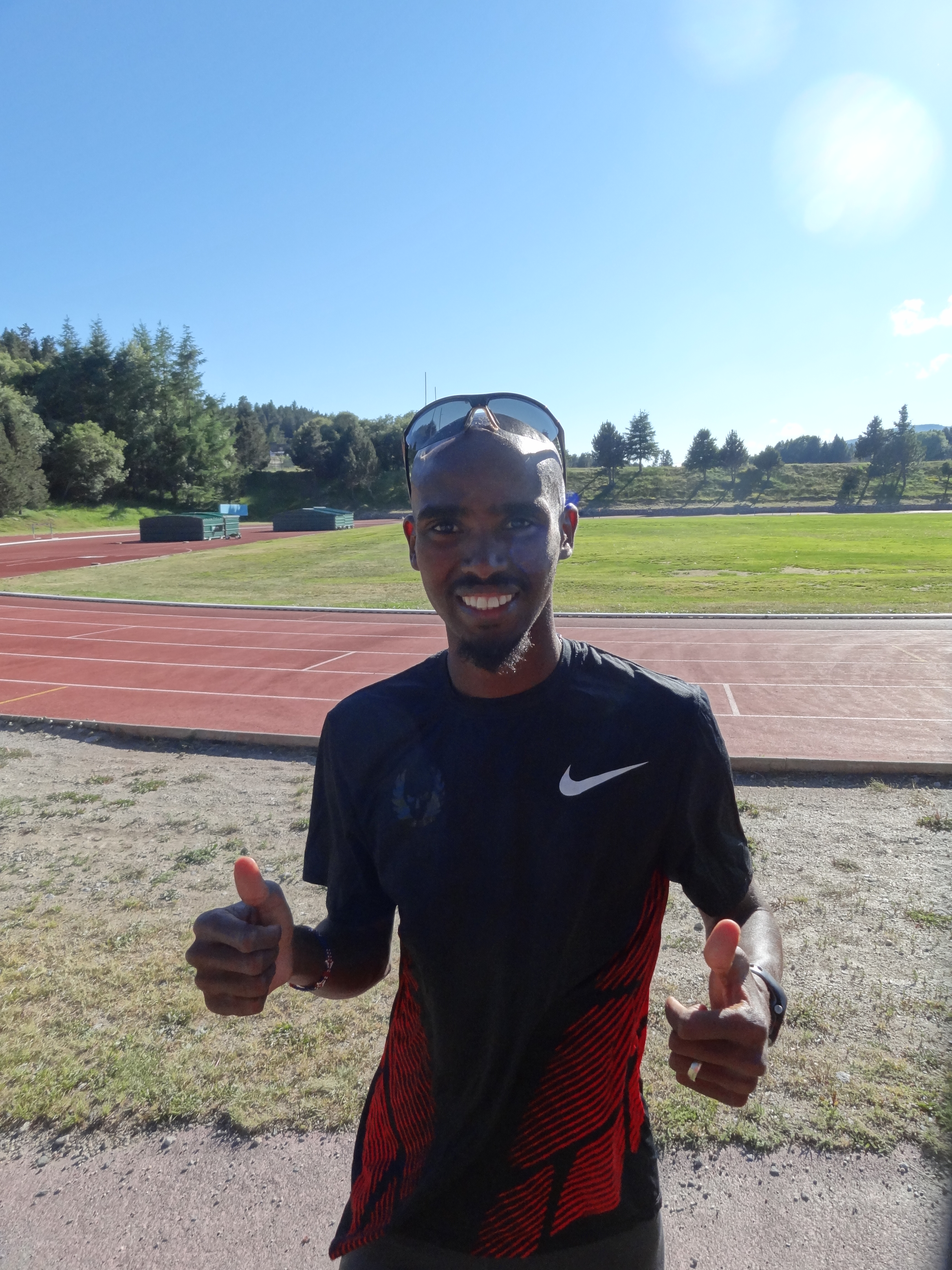 Nous avons croisé Mo Farah à Font-Romeu (photos et vidéo), il se rode et profite de l’altitude avant de descendre sur Londres. Il semblait totalement décontracté ! Et comme tout champion qui se respecte, tout à fait abordable. Avant de nous accorder une photo, il a terminé son footing, nous a rejoint au grillage du stade avant de repartir faire ses lignes dont vous pouvez apprécier une d’entre elles : relâchement, amplitude, fluidité, quel style!