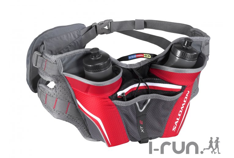 A 2 bidons, le poids est mieux réparti et l’avantage est de pouvoir mettre 2 liquides différents : eau et boisson énergétique par exemple. Ces ceintures incluent des mini poches zippées très pratiques pour y mettre les clés de voiture ou des gels.