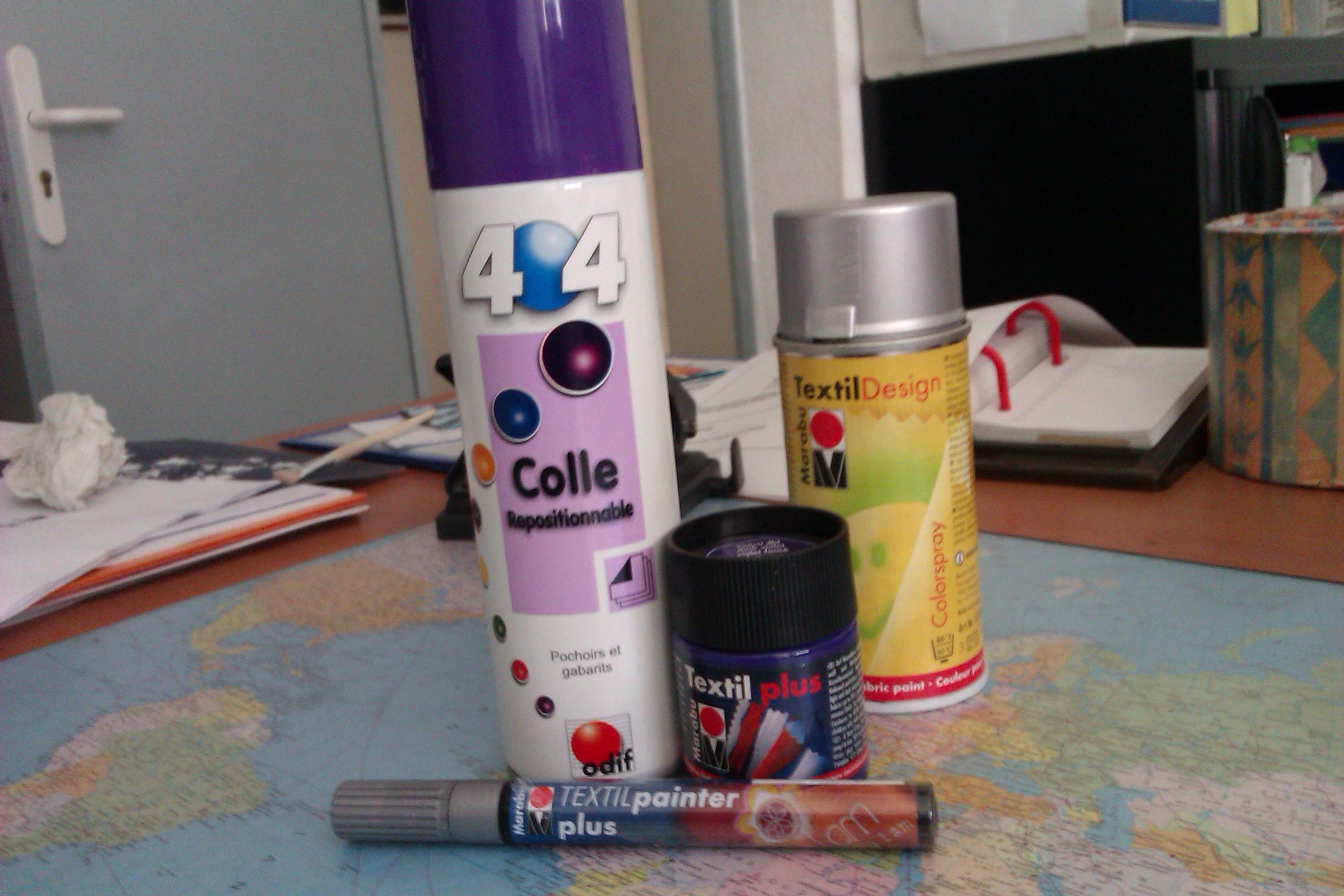 Le plus simple c’est d’acheter un peu de peinture textile (bombe, pot ou stylo entre 4 à 7 euros pièce et c’est réutilisable) et de dessiner à main libre si vous êtes une ou un artiste soit de faire un pochoir (avec de vieilles radio ou du carton de récup) ou l’acheter tout prêt (entre 8 et 15 euros pièce). Et petit plus pour éviter que la peinture bave, une bombe de colle repositionnable à appliquer sur votre ou vos pochoirs. Et avant de commencer à peindre, n’oubliez pas de mettre un carton ou vieux calendrier dans le tee-shirt pour éviter que ça ne bave de l’autre côté…!