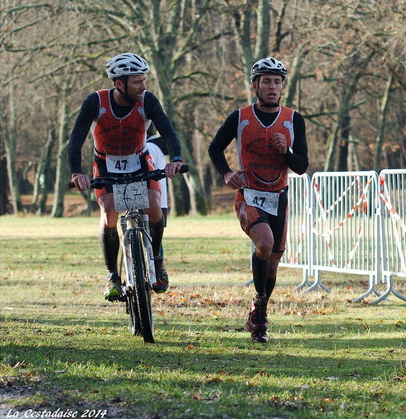 Avec mon fidèle coéquipier Lucho, et sous nos nouvelles couleurs orangées, nous voici présents, pour ce qui est notre 4ème participation –exit 2012 cause neige-, sur ce Bike & Run de Cestas.