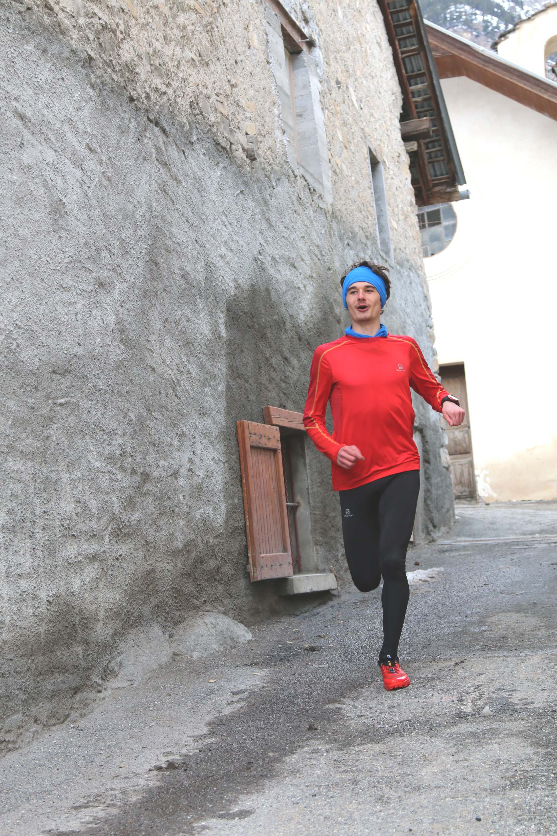 J’utilise au plat ou en côte tous les types d’entraînement et d’intensité : endurance, VMA, seuil… Leur durée dépend de la période et de la course préparée. Je complète parfois avec du ski de fond ou du vélo pour les sorties longues d’endurance. Mon type de parcours préféré est un parcours en montagne avec une montée et une descente sur environ 800 à 1000 m de dénivelé positif. Une fois la montée passée, j’envoie tout pour redescendre le plus vite possible ! Cela ne me dérange pas de m’entraîner seul, c’est ce que je fais la plupart du temps. Je préfère quand même, sur les séances de vitesse, être accompagné d’un lièvre un peu plus fort qui me pousse pour suivre les allures.