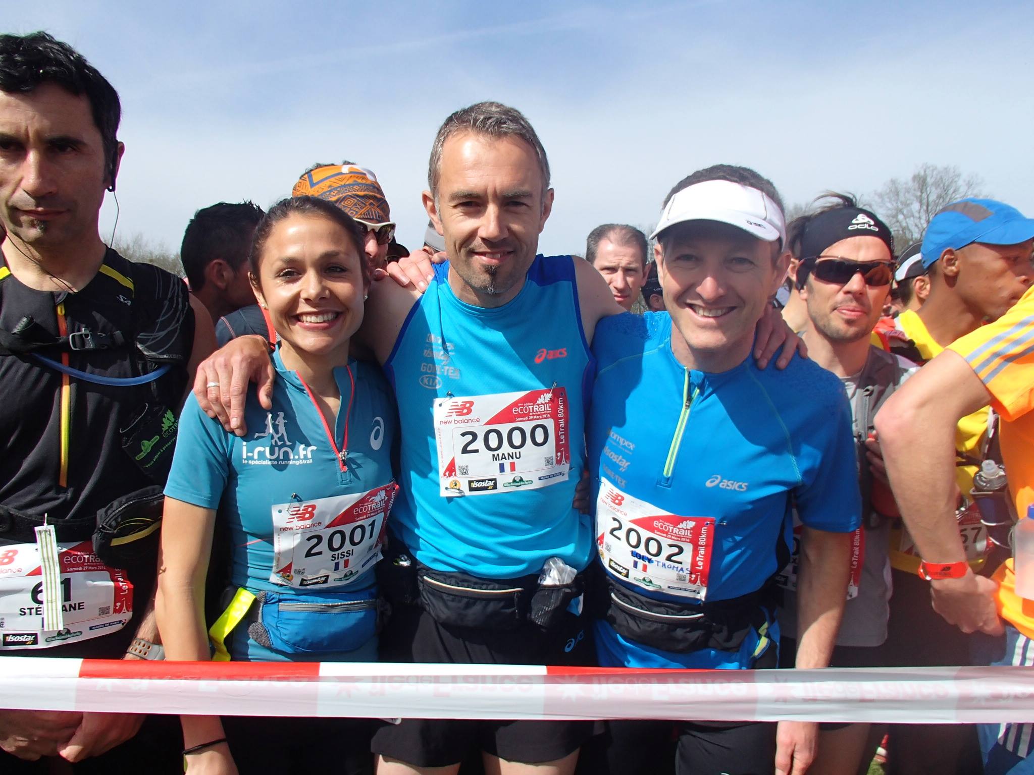 Arrivés sur Paris vendredi soir un peu tard, nous rejoignons Laurent et Cathy Ardito du team ASICS à l’hôtel proche de Saint Quentin. Pour une fois, la dernière nuit avant une grosse course est plutôt réparatrice, quelle chance ! Le départ du 80km est à 12h, pas besoin de mettre le réveil avant le levé du soleil, ça, c’est le côté positif. Nous prenons le chemin du lieu de départ vers 11h avec Thomas Saint Girons qui nous a retrouvé à la sortie de son train de nuit (il a sûrement moins bien dormi que nous …). 1900 coureurs attendus sur cette course, ça va faire du monde devant la ligne tout ça. En effet, la base de loisir de Saint Quentin grouille de traileurs, nous voilà bien dans l’ambiance !