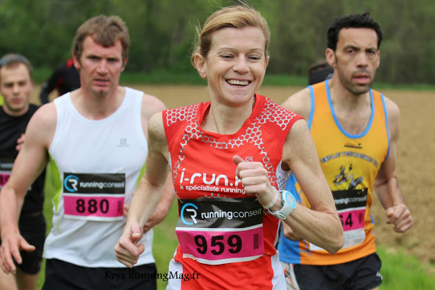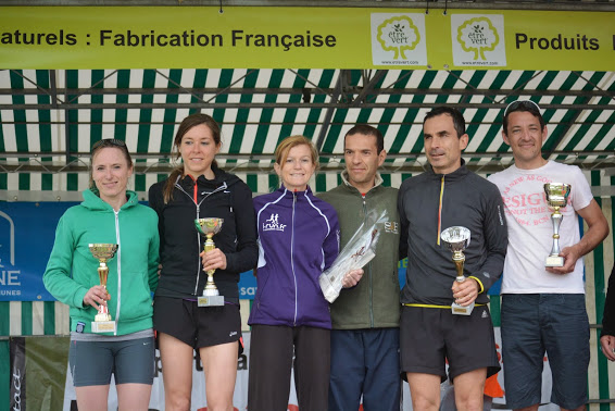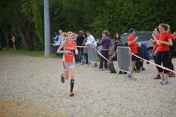 Le parcours est à mon gout, petits coups de cul et mono traces dans la forêt, très peu de bitume, le passage dans les champs casse la vitesse, les mottes de terre sont bien dures (et oui Mimi cracra elle préfère la boue). 10ième kilomètre annoncé, petite inattention et bada boom une petite chute mais sans gravité on se relève, et on s’accroche au 4ième. L’arrivée est toute proche dans le village avec les coureurs du 6km, un tour de terrain de foot et la Victoire chez les féminines en 56 ‘56mn et ce qui me fait le plus plaisir c’est cette 5ième place au Scratch. Les BV Sport Elite ont fait le Job pas de douleurs aux mollets.