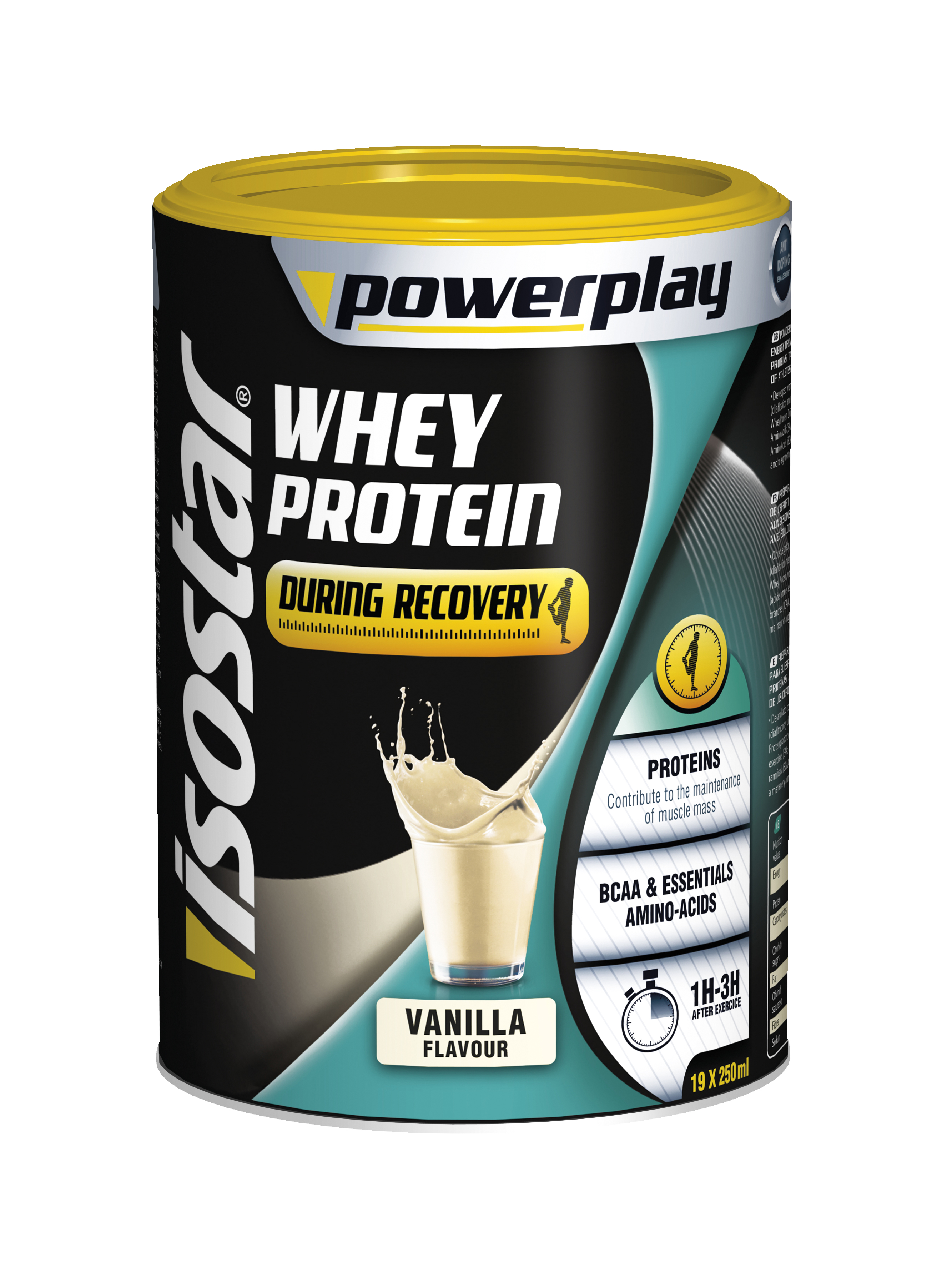Moment d’utilisation : Consommer Isostar Whey Protein dès la fin et au plus tard dans les 3 heures après la fin de l’effort à raison de 1 à 3 portions (0.8-1.5 g/kg poids corporel)