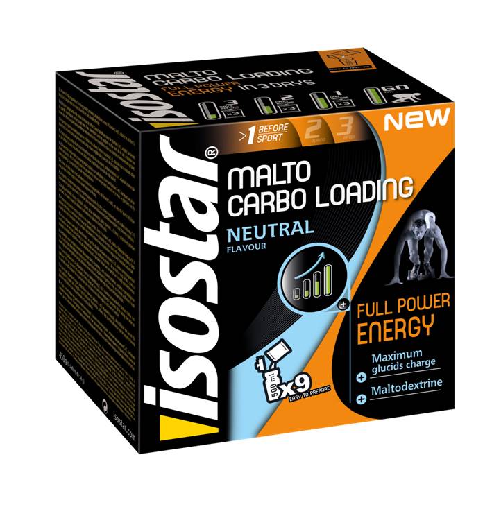 Le malto Carbo Loading d’Isostar est un « bon moyen d’assurer une reconstitution des glycogènes, molécules permettant le stockage dans les muscles et le foie. A savoir, la réserve de glycogène est la principale ressource des efforts aérobies intensifs » précise Benoît Nave. « Il est préférable de l’utiliser J-4 et J-2 avant la compétition en complément d’une alimentation riche en glucides »