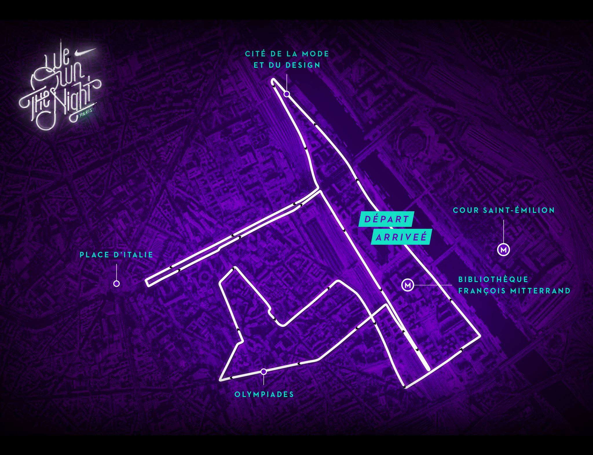 Du pont de Tolbiac à la Bibliothèque Nationale de France en passant par les quais de seine, cette course organisée par Nike sera semée de surprises. Kilomètre après kilomètre, vous resterez motivées grâce à la musique, les jeux de lumières et bien plus encore.