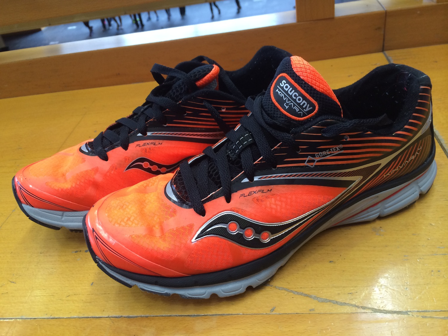 C’était aussi la première fois que je chaussais les Saucony Kinvara 4 en compétition. La pluie tombait bien puisqu’elle fut l’occasion de tester sa membrane Gore-Tex qui s’avère efficace ! Dans un prochain article, je reviendrais plus longuement sur le modèle de la marque américaine. Quant à l’appareil photo, guère friand des averses, il est resté bien au chaud.
