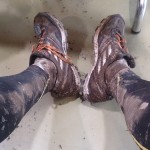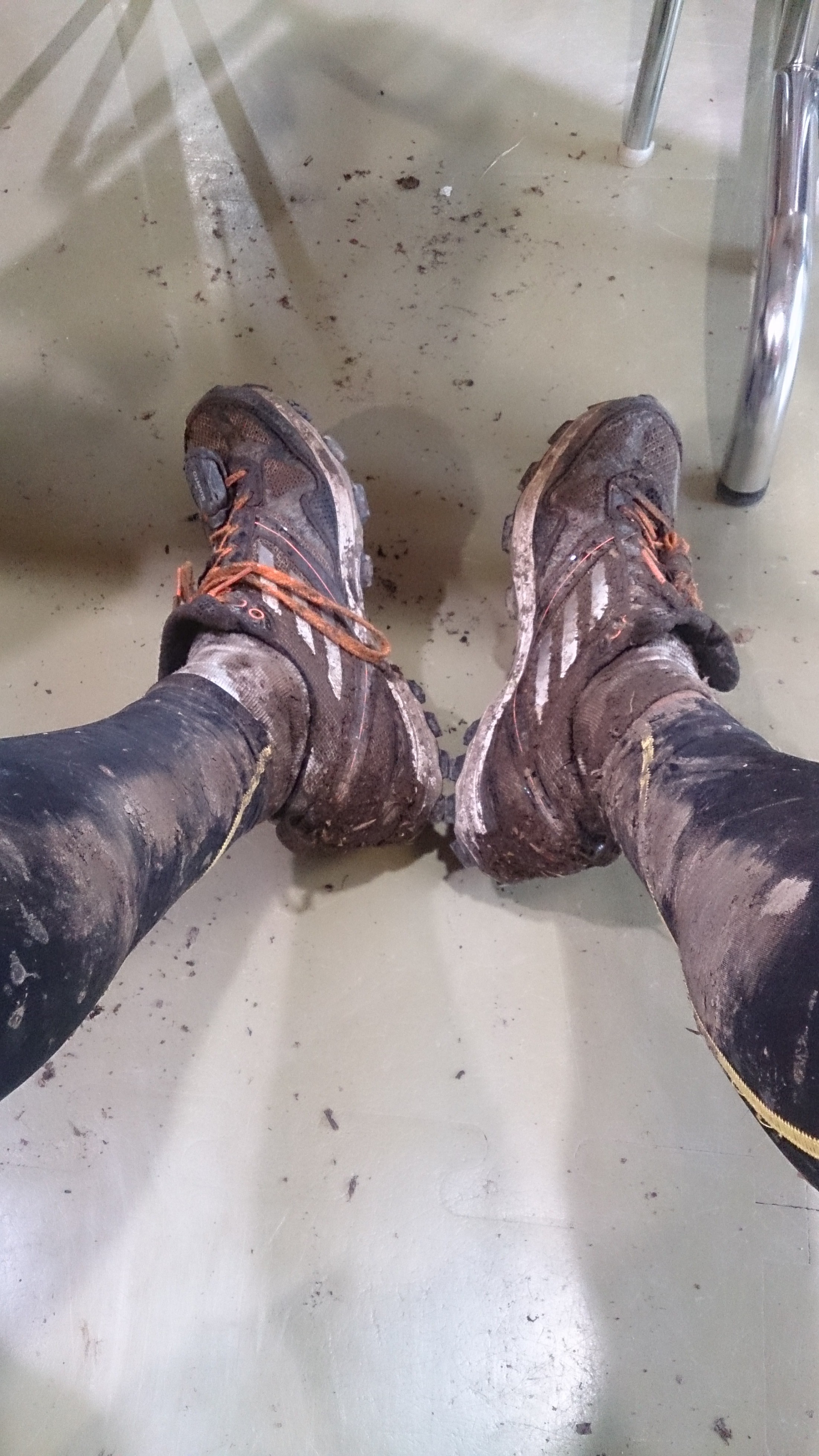 A 8h45, nous nous plaçons sur la ligne de départ de ce 27 km avec 1400 m de dénivelé: la « Malpassant » (pourquoi ce nom?), accompagnés des quelques 500 autres coureurs. Nous attaquons par un premier kilomètre sur bitume, puis entrons dans les bois. Et c’est parti! J’ai bien fait de chausser mes Adidas Adizero XT4M, car les sentiers sont très gras. Je trouve peu à peu mon rythme et me place en 4ème position. Nous rencontrons de nombreux passages très difficiles aux pourcentages très élevés, les cuisses se durcissent. Çà va être long… Je me fais un peu dépassé et bascule en haut du sommet en 9ème place, au 17ème km. Je me dis que le plus dur est fait, qu’il ne me reste qu’à gérer les 10 km de descente.