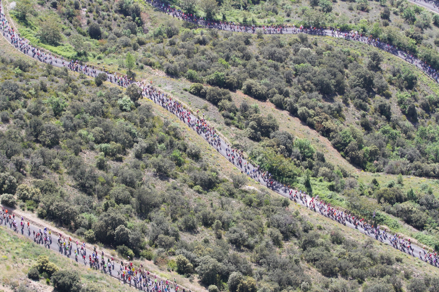 Sergueï Marchouk pour montrer son maillot jaune et bleu de l’Ukraine, le Français Sébastien Beltran pour imposer sa marque dès le début de course ont pris les commandes de cet immense peloton enthousiaste à l’idée de courir entre ciel et terre.