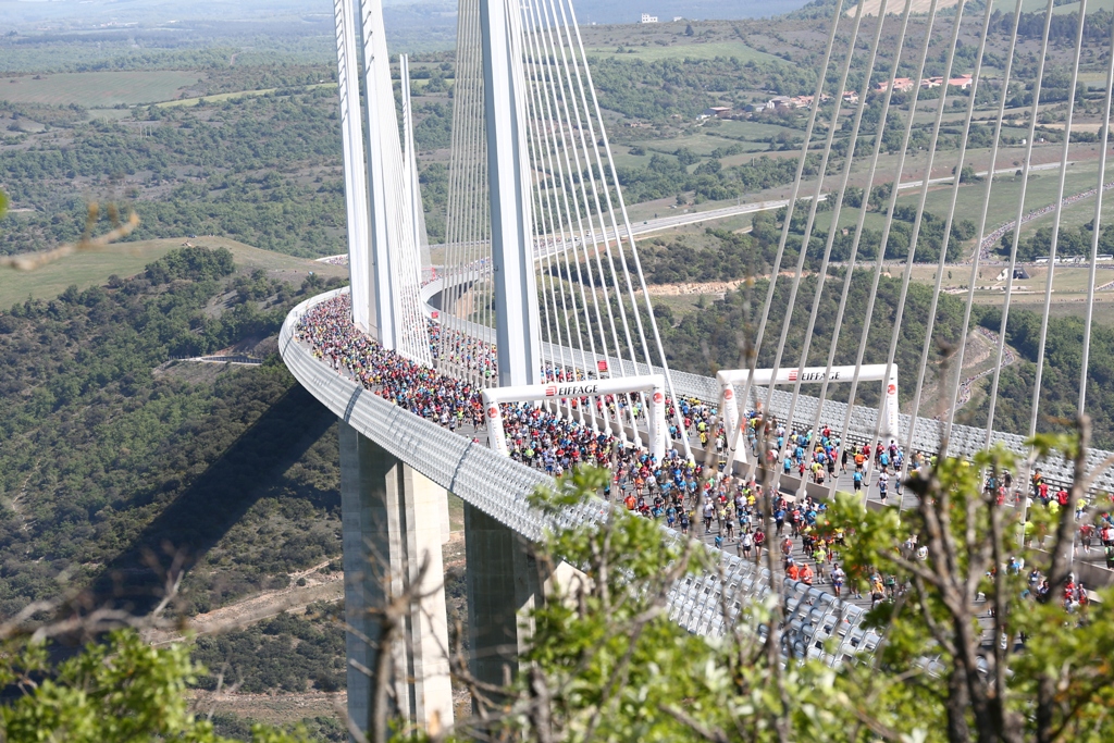 Décor et sensation uniques. Du haut de ses 270 mètres, le Viaduc célèbre ses 10 ans en accueillant 15 000 coureurs sur ses plates-bandes. Pour l’occasion, le Viaduc a été privatisé par la fermeture de l’autoroute A75 de 08h30 à 13h30. La Course Eiffage du Viaduc de Millau s’est déroulée dans des conditions optimum comme en témoignent les jumeaux kenyans Stephen et Charles OGARI, premiers arrivés ex aequo en 1h16’59. Un temps clément pour parcourir les 23,7km. En clair, une édition sous le soleil millavois et la bonne humeur.