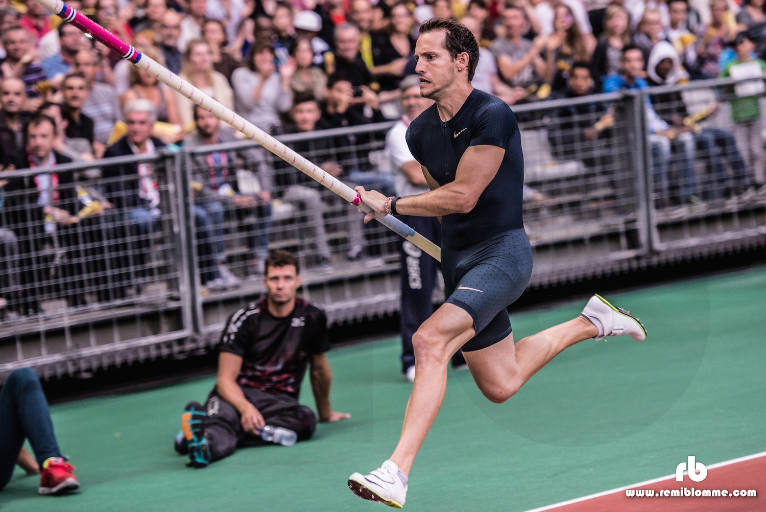 Lavillenie sans forcer. Une petite perche et puis s’en va. Renaud Lavillenie a assuré l’essentiel samedi soir avec un unique saut à 5m70 au premier essai. Face à une concurrence fébrile et un vent persistant, la soirée n’était pas propice aux performances, permettant au recordman du monde de s’imposer devant un public en feu. C’est la 6e victoire d’affilée pour le clermontois au Meeting Areva ! L’espoir Kévin Ménaldo prend la 2e place.