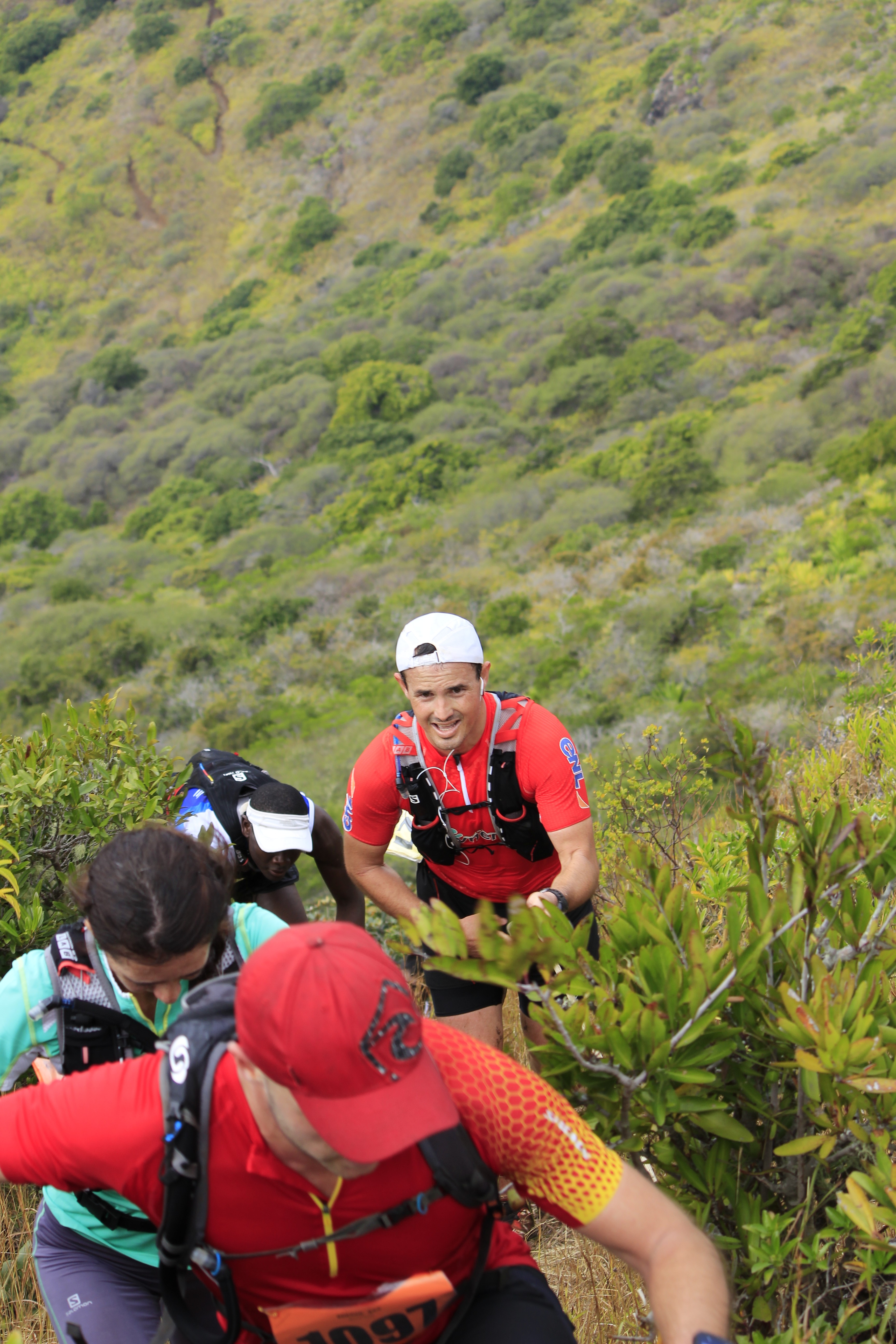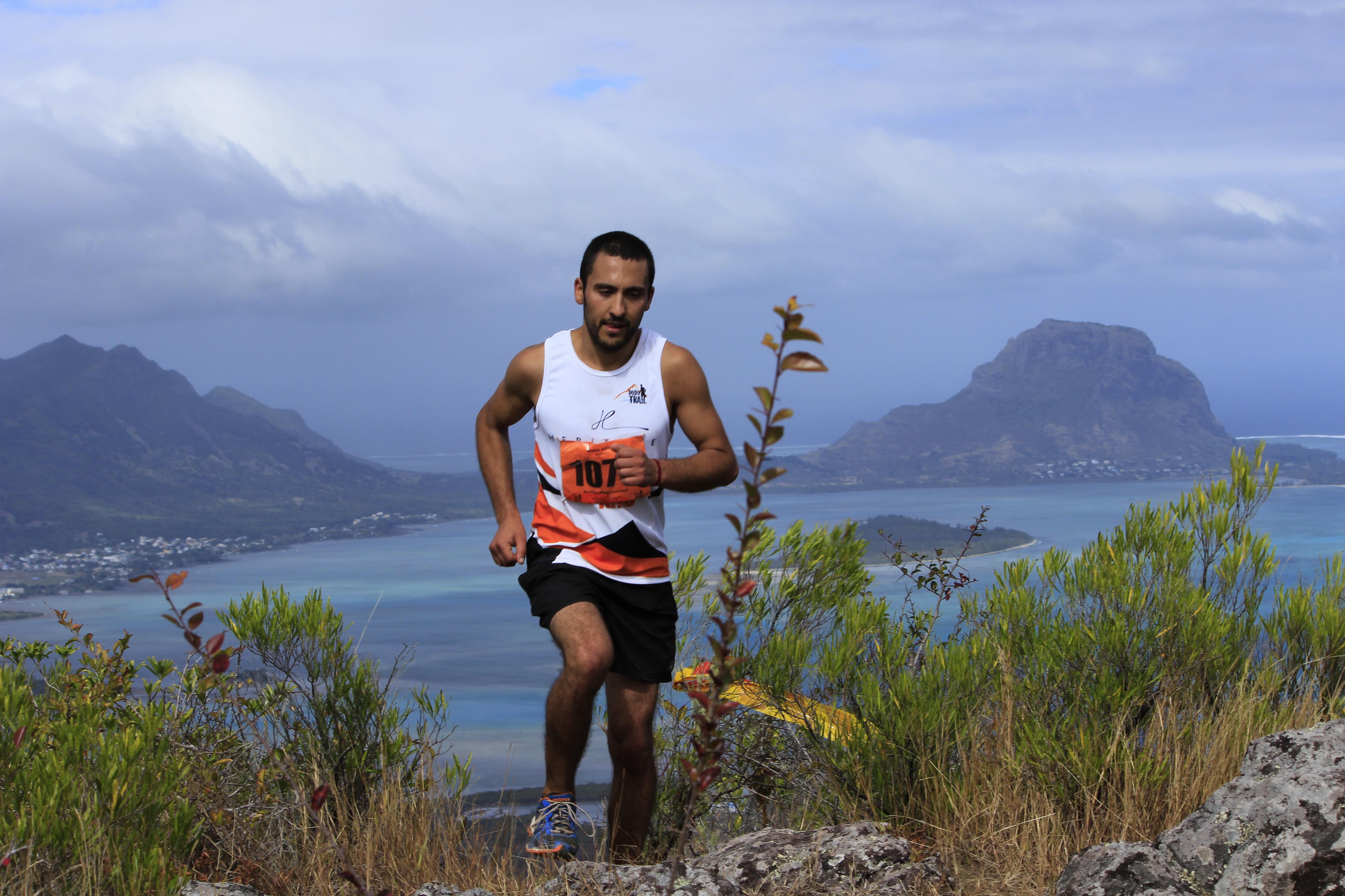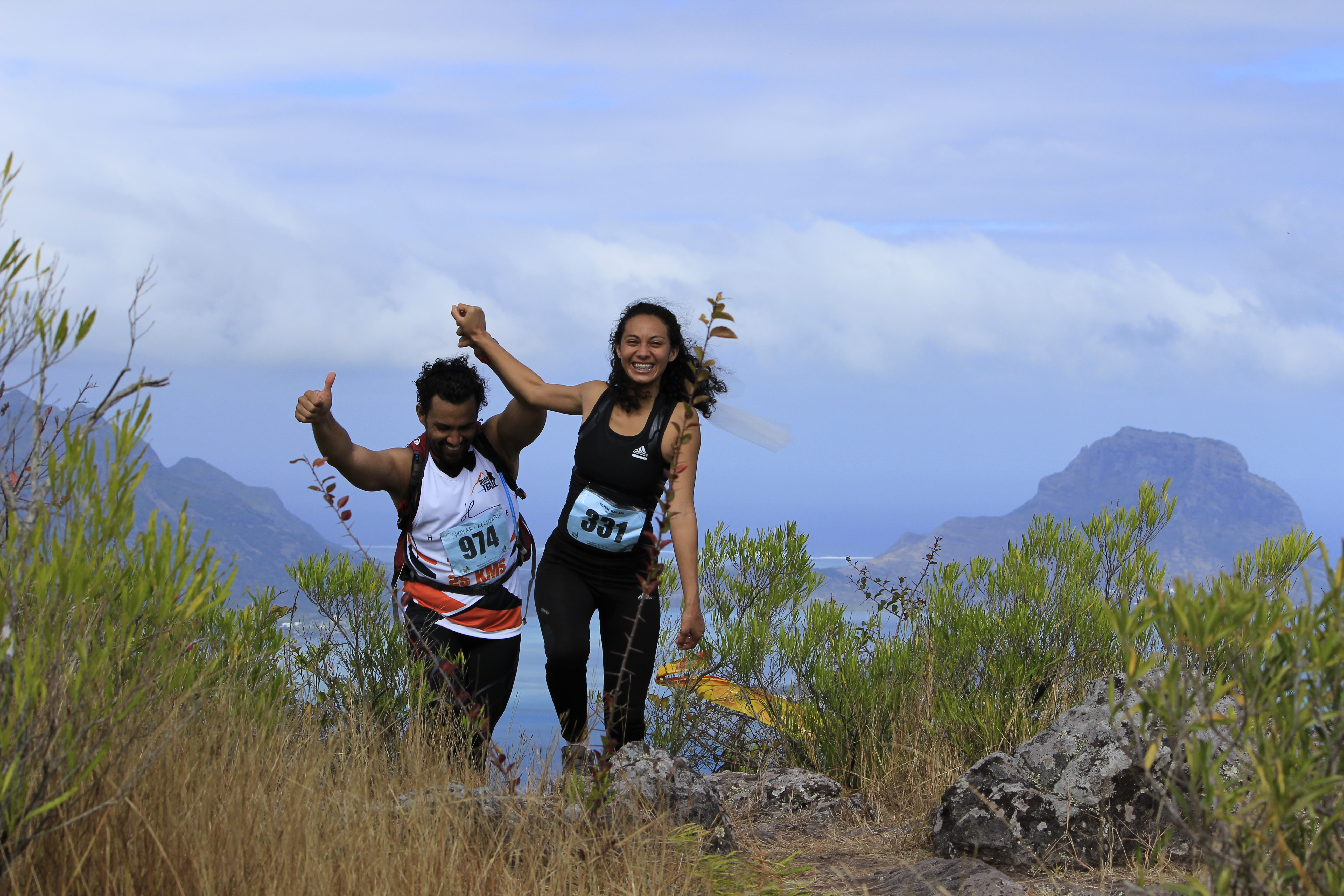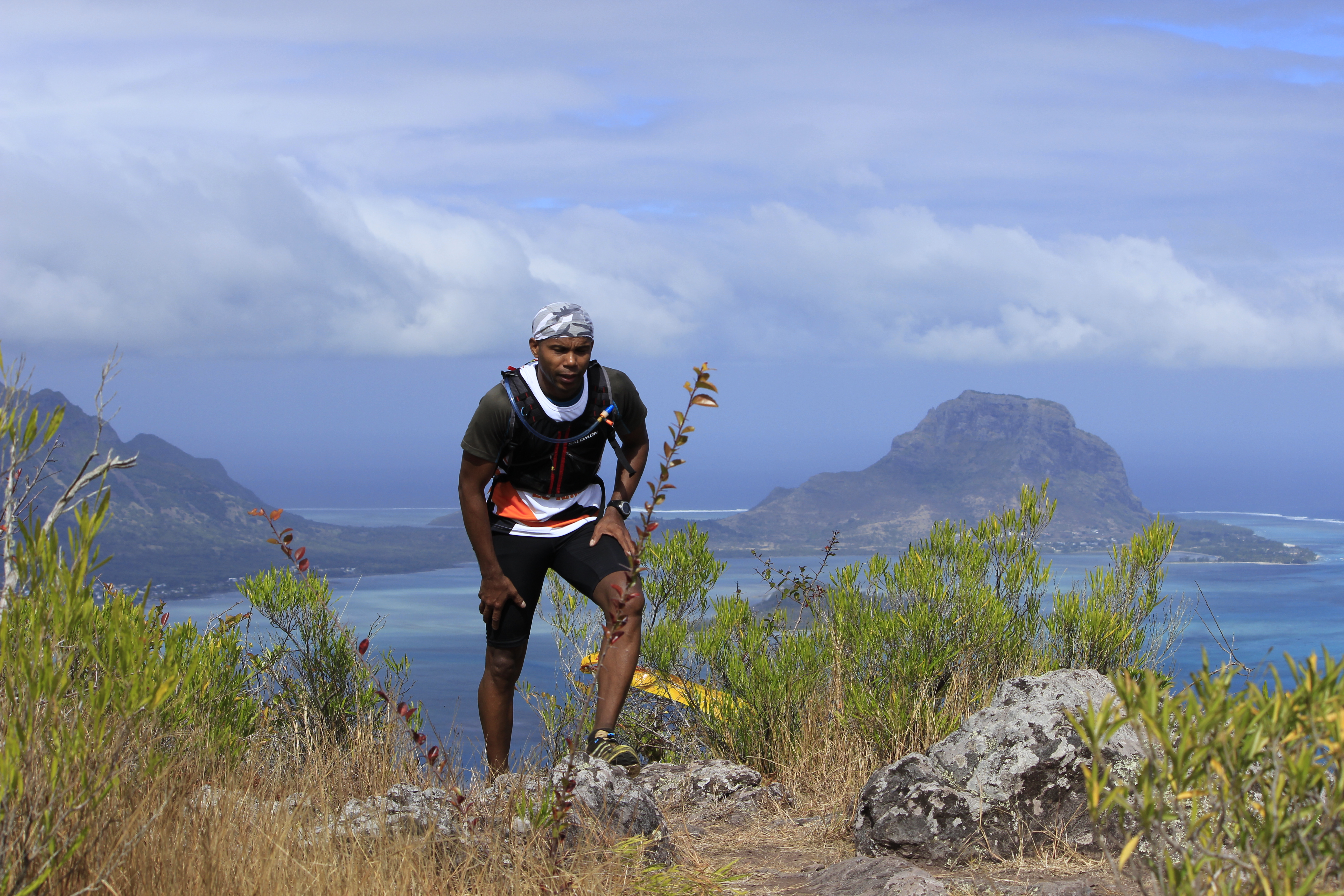 Pour cette 4ème édition, ces « privilégiés » étaient plus de 1 300. Soit le double de 2013, qui était déjà une année record ! Parmi eux, plus de 250 venaient de l’étrangers (Afrique du Sud, France, Allemagne, Italie, Belgique…), et 150 de l’ile sœur, la Réunion. Un plateau international donc, avec au départ du X-treme Dodo trail, la course reine (50 km, 3 500m de dénivelé), deux traileurs qui ont marqué la saison dernière : Ricky Lightfoot, le champion du monde 2013-2014, et Xavier Thevenard, le vainqueur de l’Ultra-Trail du Mont Blanc 2013. Ce dernier, déjà présent l’an passé mais contraint à l’abandon à mi-course, victime de crampes, avait à cœur de revenir à Maurice pour aller au bout de ce démentiel parcours. Démentiel tant par sa difficulté, marquée par de nombreuses ascensions à très forte verticalité tracées au plus droit dans la pente, suivies de descentes tout aussi raide, souvent aidées de mains-courantes, que par la beauté et la variété des paysages traversés, allant de la forêt tropicale dense aux pics de granits, en passant par des prairies asséchées ressemblent à la savane Africaine. Les panoramas à couper le souffle offerts de certains sommets sont de plus exclusifs car situés dans des propriétés privées. Ils permettent de découvrir la beauté de Maurice au travers de surprenants point de vue sur les plages, le lagon bleu de l’ilot au Bénitier, et l’intérieur des terres avec notamment la forêt du Parc National des Gorges de la Rivière Noire.