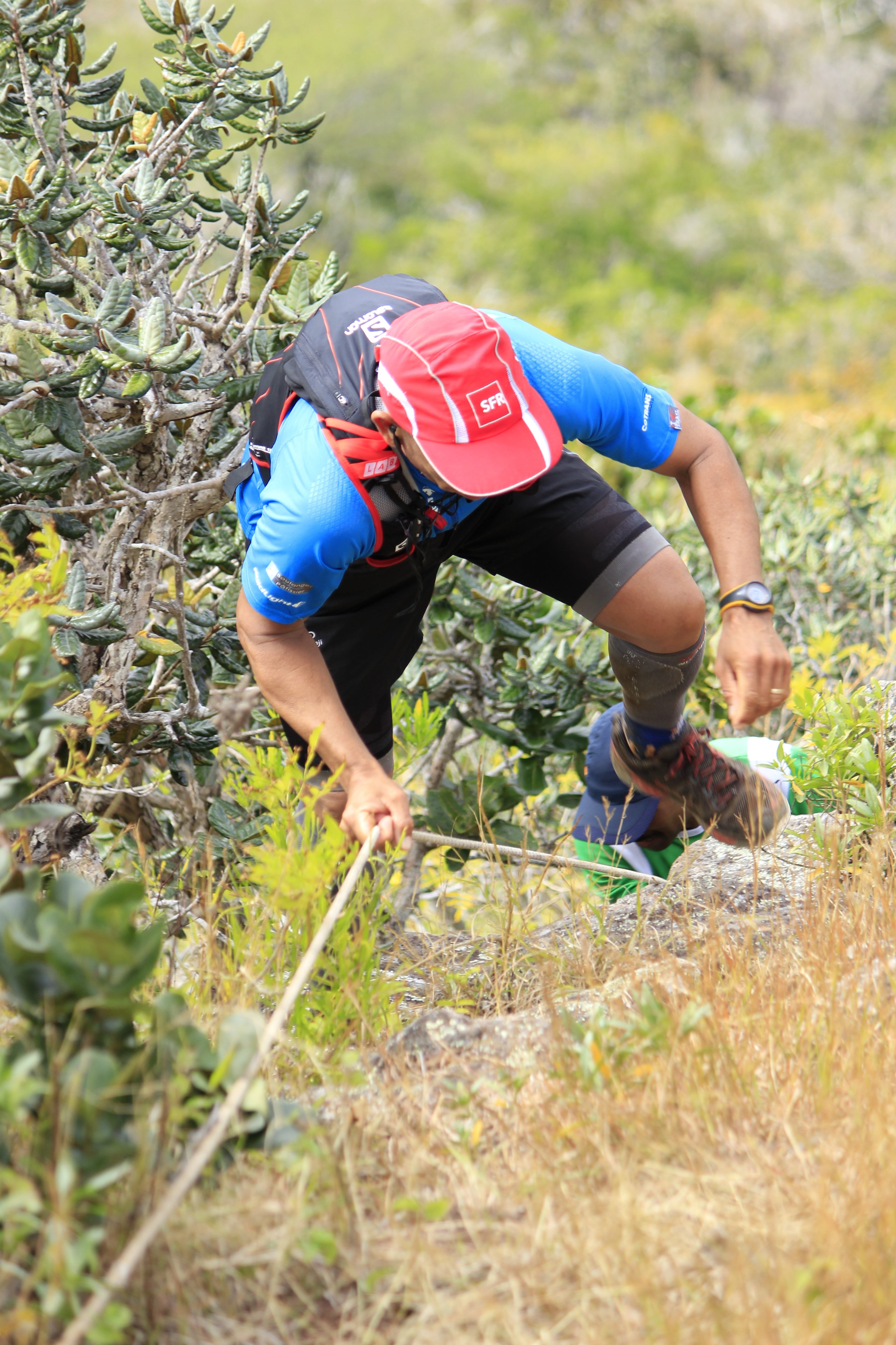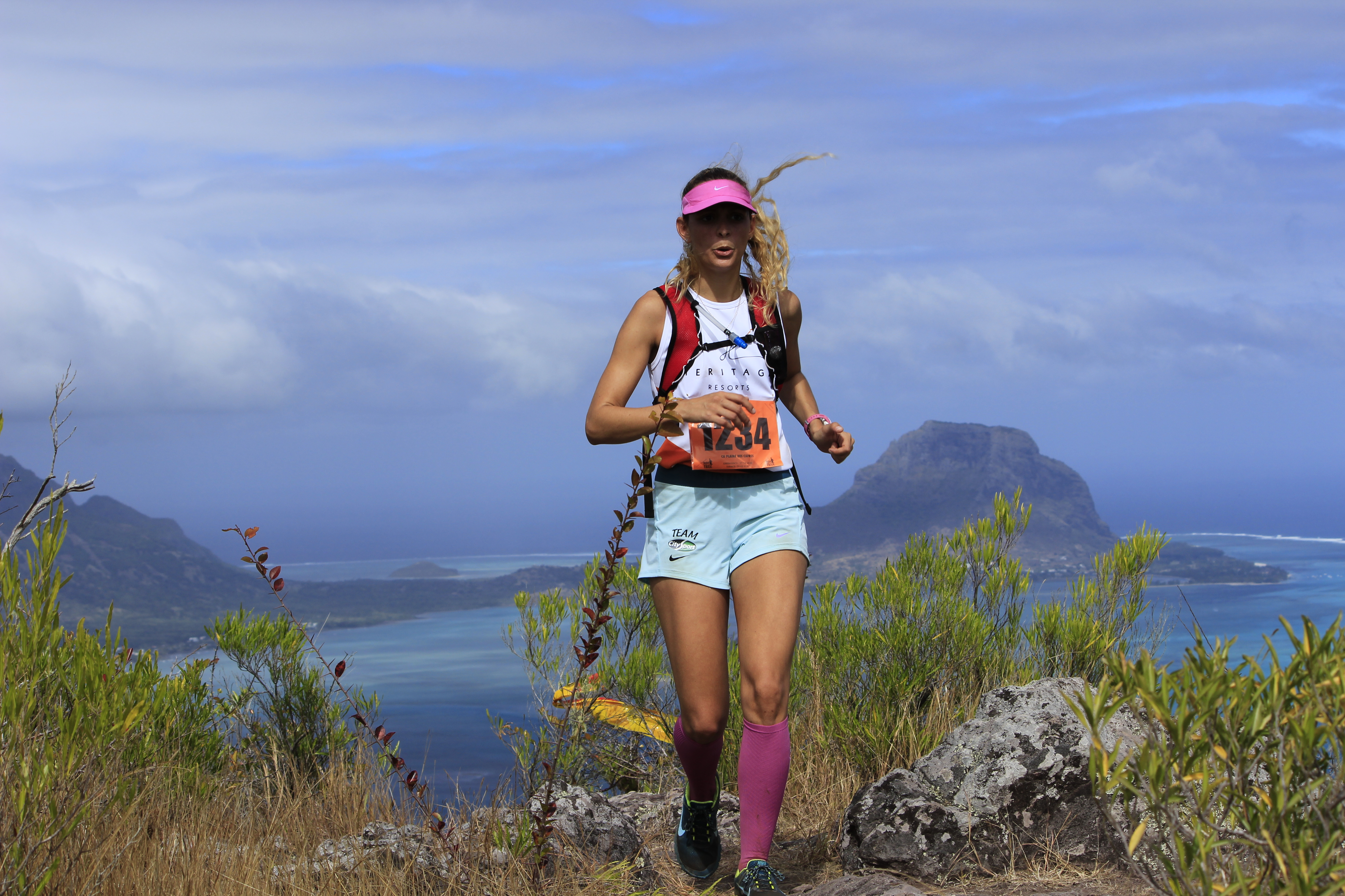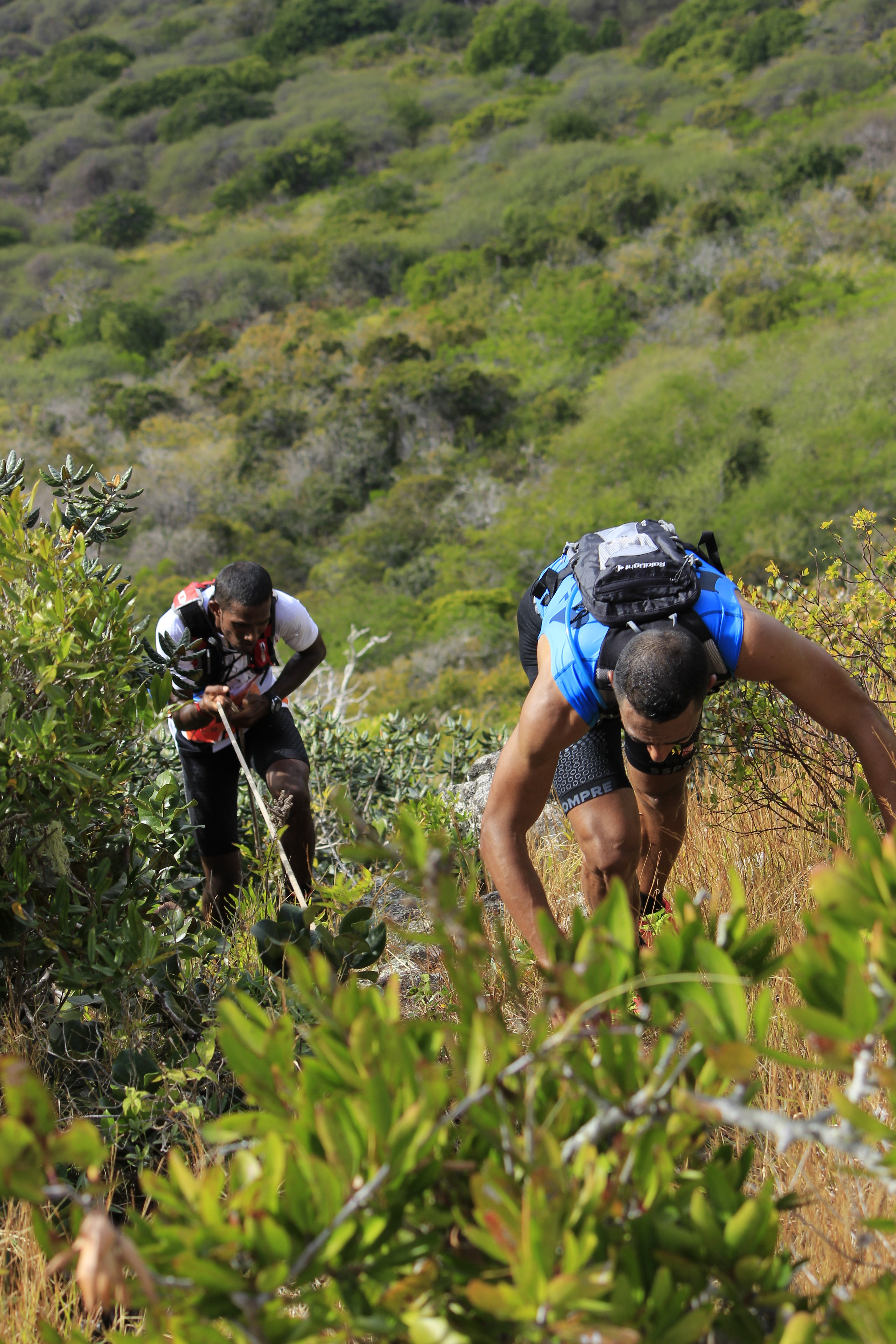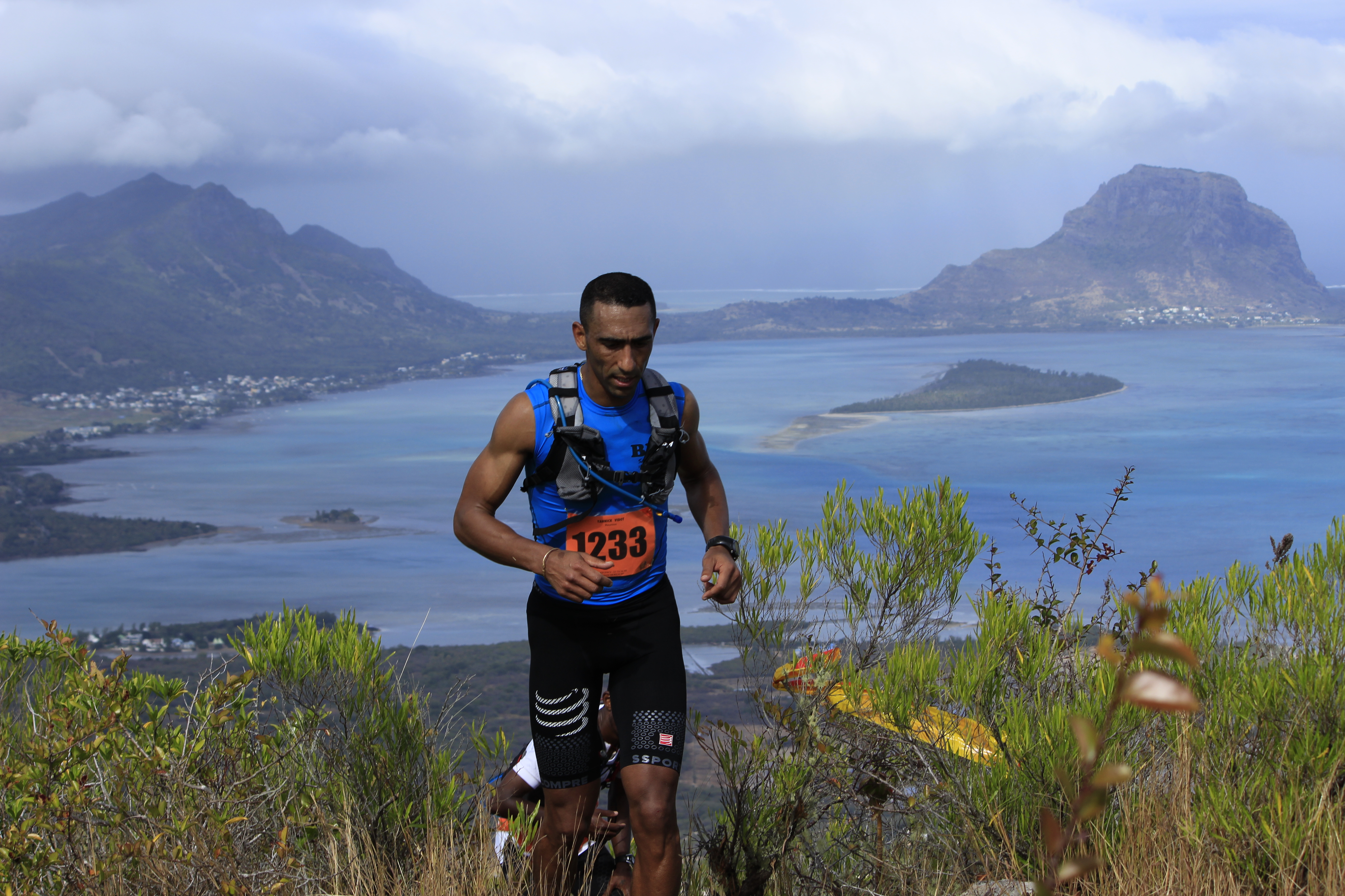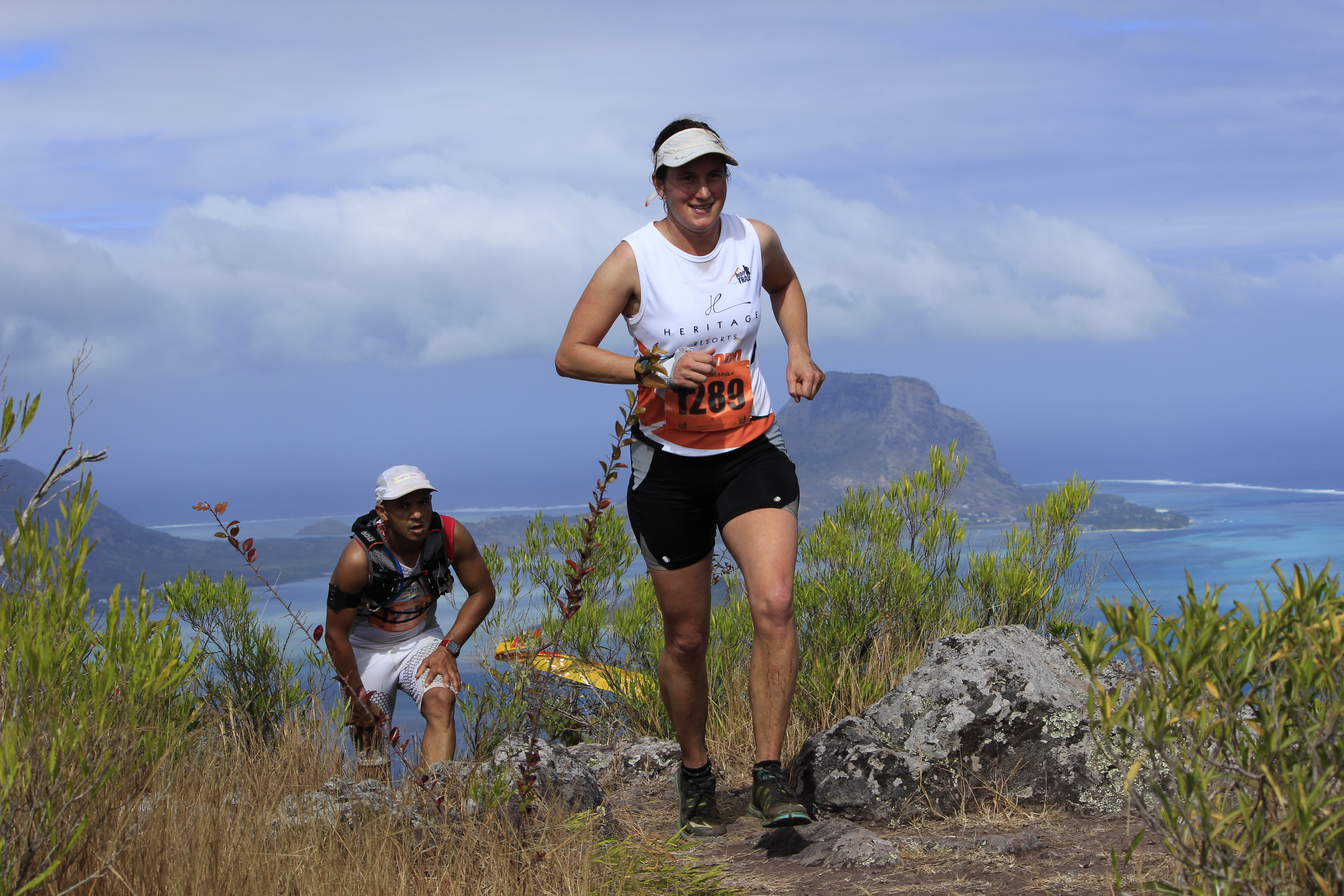 Pour cette 4ème édition, ces « privilégiés » étaient plus de 1 300. Soit le double de 2013, qui était déjà une année record ! Parmi eux, plus de 250 venaient de l’étrangers (Afrique du Sud, France, Allemagne, Italie, Belgique…), et 150 de l’ile sœur, la Réunion. Un plateau international donc, avec au départ du X-treme Dodo trail, la course reine (50 km, 3 500m de dénivelé), deux traileurs qui ont marqué la saison dernière : Ricky Lightfoot, le champion du monde 2013-2014, et Xavier Thevenard, le vainqueur de l’Ultra-Trail du Mont Blanc 2013. Ce dernier, déjà présent l’an passé mais contraint à l’abandon à mi-course, victime de crampes, avait à cœur de revenir à Maurice pour aller au bout de ce démentiel parcours. Démentiel tant par sa difficulté, marquée par de nombreuses ascensions à très forte verticalité tracées au plus droit dans la pente, suivies de descentes tout aussi raide, souvent aidées de mains-courantes, que par la beauté et la variété des paysages traversés, allant de la forêt tropicale dense aux pics de granits, en passant par des prairies asséchées ressemblent à la savane Africaine. Les panoramas à couper le souffle offerts de certains sommets sont de plus exclusifs car situés dans des propriétés privées. Ils permettent de découvrir la beauté de Maurice au travers de surprenants point de vue sur les plages, le lagon bleu de l’ilot au Bénitier, et l’intérieur des terres avec notamment la forêt du Parc National des Gorges de la Rivière Noire.