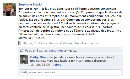 Stéphane qui nous a déjà livré de précieux conseils sur u-run, revient aujourd’hui avec une question et Eric, le coach de u-run lui répond. Ca se passe comme ça sur u-run, votre blog est interactif : vous posez une question, la communauté ou le coach vous répond. Aujourd’hui Stéphane nous demande s’il faut putôt relacher ses bras et ses poignets pendant la course ou au contraire contrôler ses mouvements pour dynamiser sa foulée. Il nous demande s’il y a un mouvement de balancier idéal.