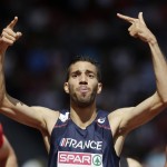 Mahiedine est de retour sur le 1500m. Son coach et Mehdi Baala, entre autres, ont pu le raisonner. La course est lente, tactique, il y a beaucoup de mouvements pour se placer. Dans l’emballage, un coureur se blessera à la cuisse, deux ou trois autres chuteront. Mahiedine part à l’extérieur et ne laisse aucune chance aux adversaires, produisant un effort hallucinant dans la ligne droite opposée ! On le sent enragé ! 52s au dernier 400m, en célébrant sa victoire la moitié du dernier 100m… Le patron, il l’a prouvé, c’est bien lui !! Yoann Kowal peut savourer avec plus de quiétude sa médaille du steeple.