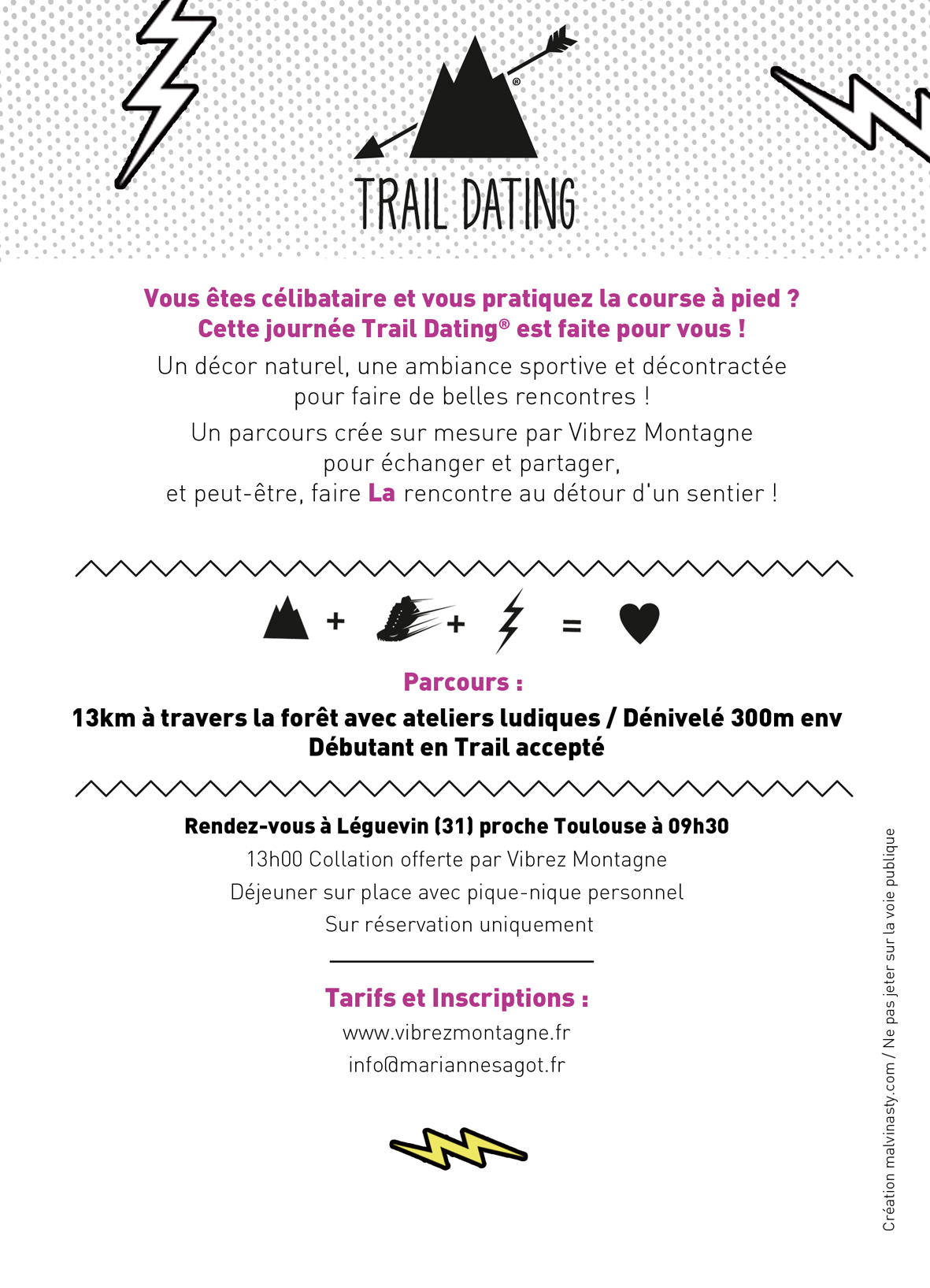 L’évènement a complètement séduit ses participants lors de la première édition. Le concept est novateur et original : permettre à des célibataires sportifs de se rencontrer à l’occasion d’une journée trail en forêt. Bonne nouvelle : la seconde édition se prépare et vous pouvez encore vous inscrire pour y participer le 18 octobre prochain !