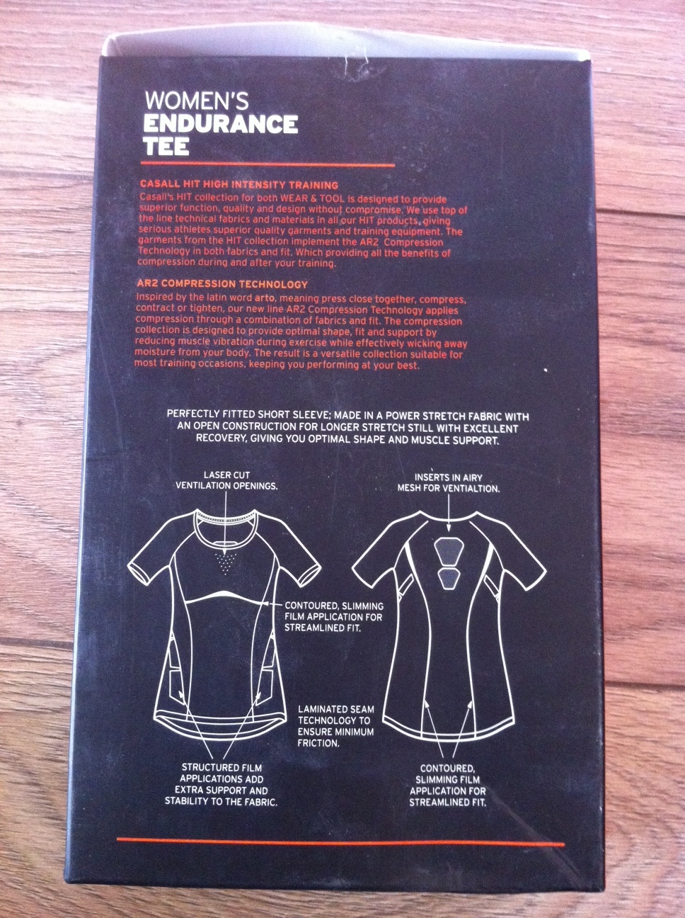 Présenté et vendu dans une jolie boîte au design très accrocheur, le tee shirt CASALL exprime une technicité avant même d’avoir été déballé ! Sur la boite, chaque détail est mis en avant et les matières utilisées sont listées, en expliquant en quoi cela avantage le produit. On sait à quoi on a affaire !