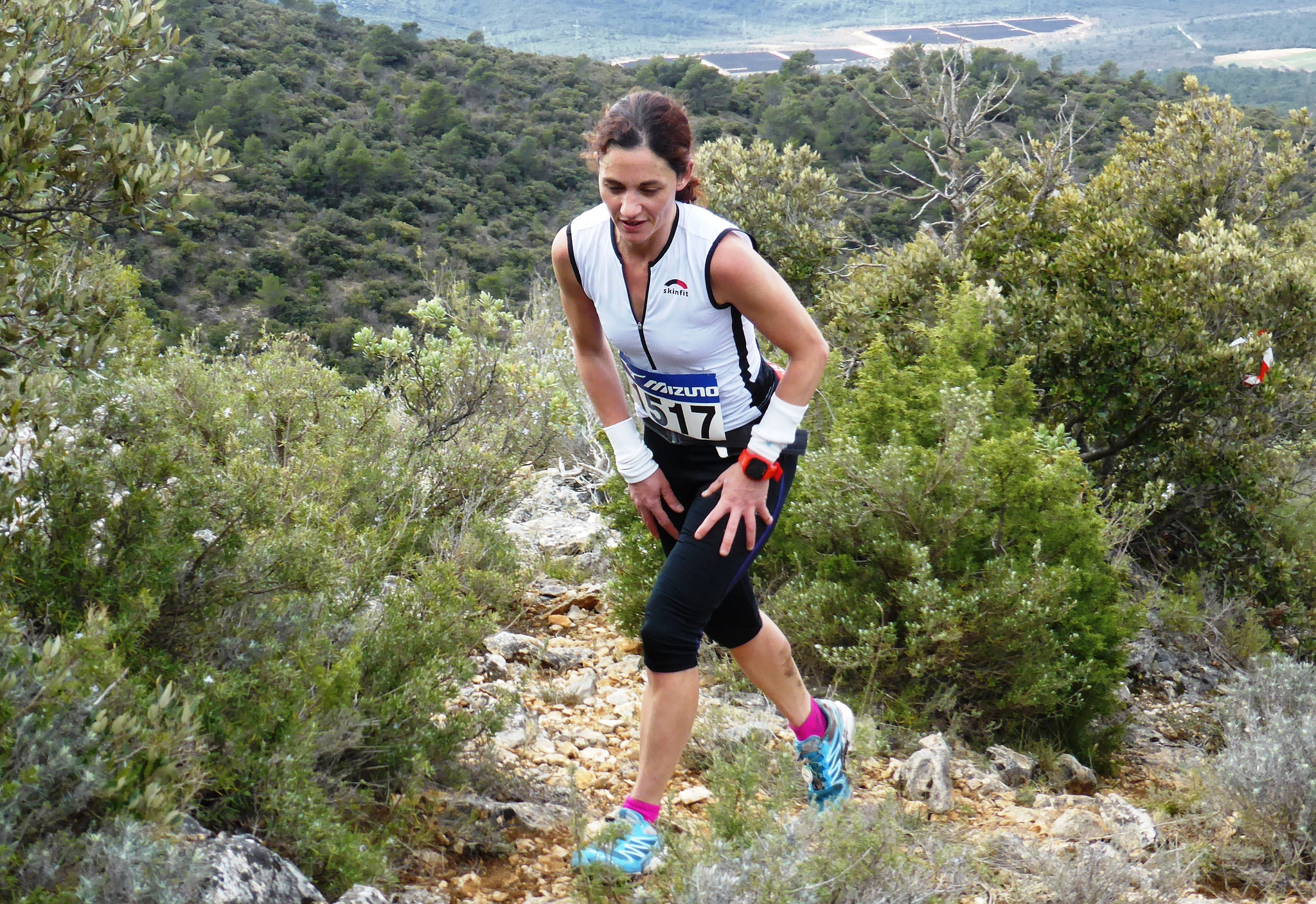 Dès le départ, le peloton s’élançait dans les rues de Signes, avec un Nicolas Ligier fougueux en tête qui, sur une erreur de fléchage, a emmené tout le peloton faire un tour d’échauffement dans Signes, tour normalement prévu en fin de parcours… Un petit bouchon sans gravité puis tous les concurrents ont attaqué la première côte, retrouvant vite le ruisseau du Latay qui a valu quelques traversées de gués et de cascades pour le bonheur du plus grand nombre! Vers le 8ème kilomètre, la montée se corsait pour atteindre la Sainte Baume entre le Signal des Beguines et le Pas de l’Aï à plus de 1000 mètres d’altitude. Le parcours abordait ensuite une belle descente technique qui se terminait par un sentier agréable le long du ruisseau du Latay avant d’attaquer la montée finale de la « Tête des Maçons (200mD+) ». Il ne restait plus ensuite qu’à négocier la dernière descente vers Signes.