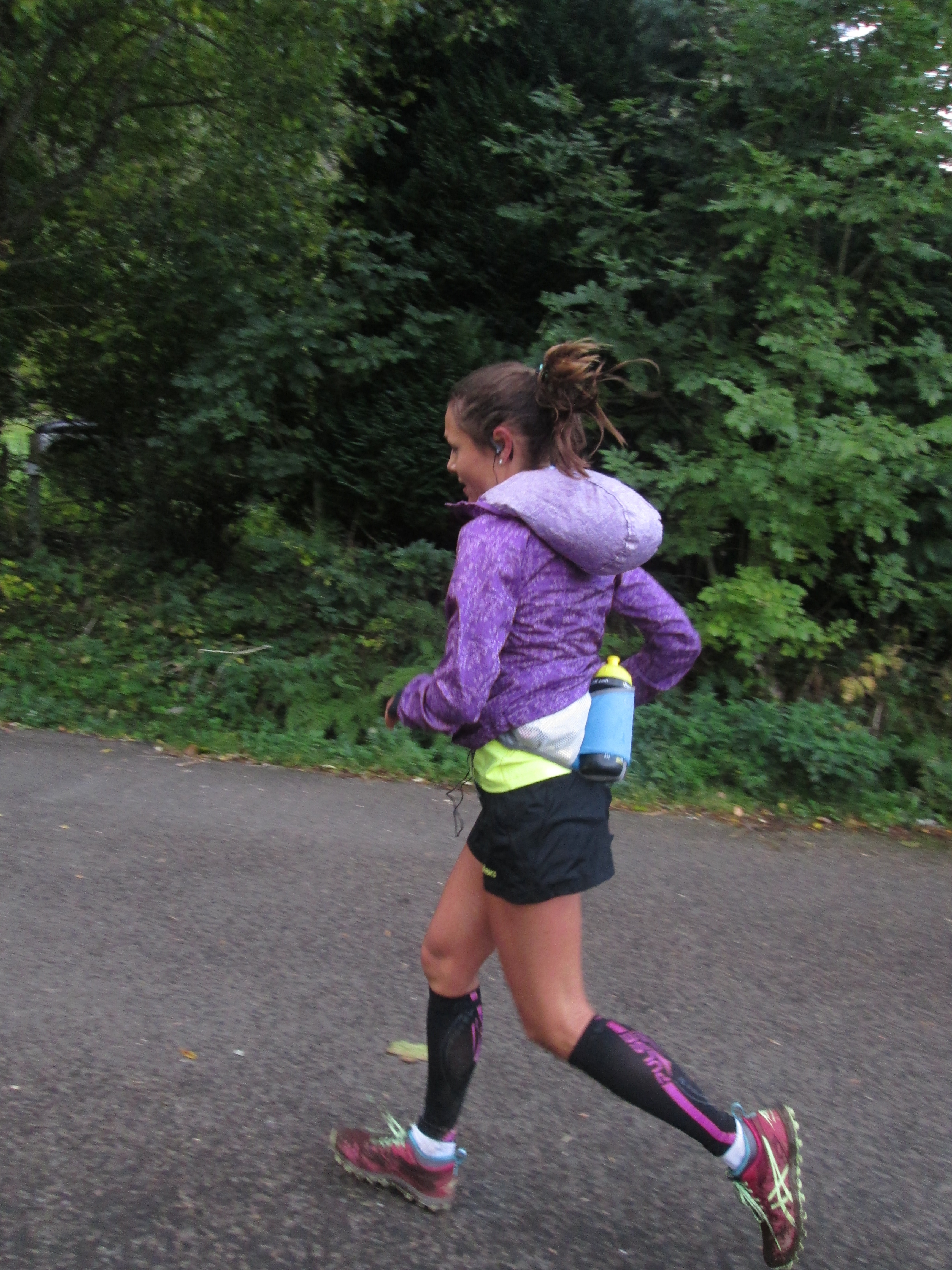 Le départ de la course est étonnamment très prudent pour tout le monde, je m’en réjouis ! Mais le peloton ne tarde pas à s’effiler, et dès l’entrée vers les premiers sentiers nocturnes, chaque coureur entre dans sa bulle, guidé par la lumière de sa frontale. J’enclenche mon MP3 déjà calé sur les oreilles, et je me cale à un rythme qui me semble être adapté, sans me soucier des autres. C’est chouette, je me régale de courir la nuit, et je prends énormément de plaisir sur cette première partie de course. Les sensations sont bonnes, les sentiers sont plutôt propres, ça grimpe tranquillement (enfin, parfois un peu raide quand même !), pendant environ 7km (avec un passage au Capucin).