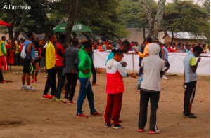 Sur le lieu de départ de la course, la population des villages aux alentours s’est déplacée et observe, amusée. L’élite éthiopienne est présente et s’échauffe déjà. L’heure du départ aussi est retardée, je m’y attendais. Hélas ce que je craignais arrive : le 42kms est annulé au dernier moment, les terrains seraient impraticables après les pluies (réellement, ou manque de culture trail ??). Les coureurs du 42 iront sur le 21. Ma prépa 42 tombe à l’eau, je ne me projette pas sur une allure et un départ 21km, je quitte la camelbak inutile sur 21, et l’échauffement inutile sur 42 pourrait l’être davantage sur 21, mais on part dans 5’… Dommage tout cela.