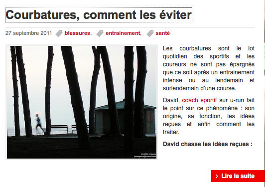 Par exemple dans la rubrique trail, vous pourrez parcourir et retrouver plus facilement les informations concernant votre entrainement trail, votre équipement trail, vos récits et compte-rendus de trails, la présentation des trails à venir pour vous aider à définir vos objectifs en connaissance de cause, le résultat et le classement des derniers trails et bien sûr… le plus important… des plans d’entrainement trail pour vous aider à progresser.