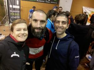Je prends quelques hectomètre encore un tape-cul et une descente que je connais bien arrive. En mode on lâche tout je me dis que la victoire peut être au bout. Arrivée sur le bitume, en descente je sens Vincent à mes trousses, Ahhh non j’ai pas fait le job pour rien et je sais que je ne suis pas une sprinteuse, je négocie avec Vincent pour une arrivée mano-a-mano. Normal il a fait la moitié du job au début. On se met quand même un « putain » de rythme car Irwin n’est pas loin. Passage de la badgeuse, on se félicite, on attend Irwin pour passer la ligne fictive sous la halle.
