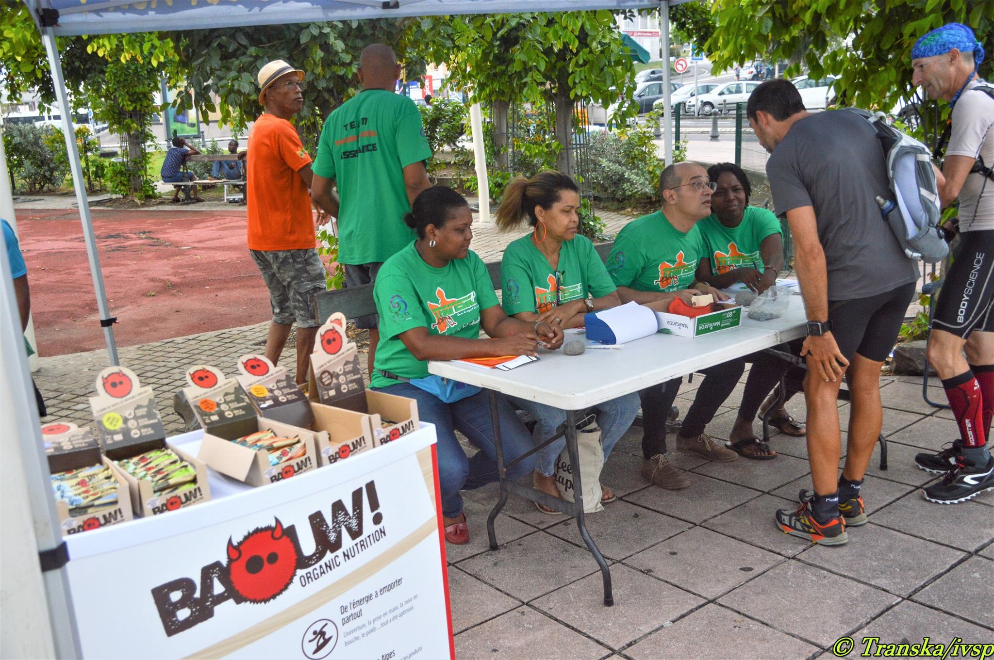 Belle ambiance antillaise sur cette aire de départ à Basse-Terre, au bord de la mer. De la musique, des coureurs avec le sourire, la zen’attitude !