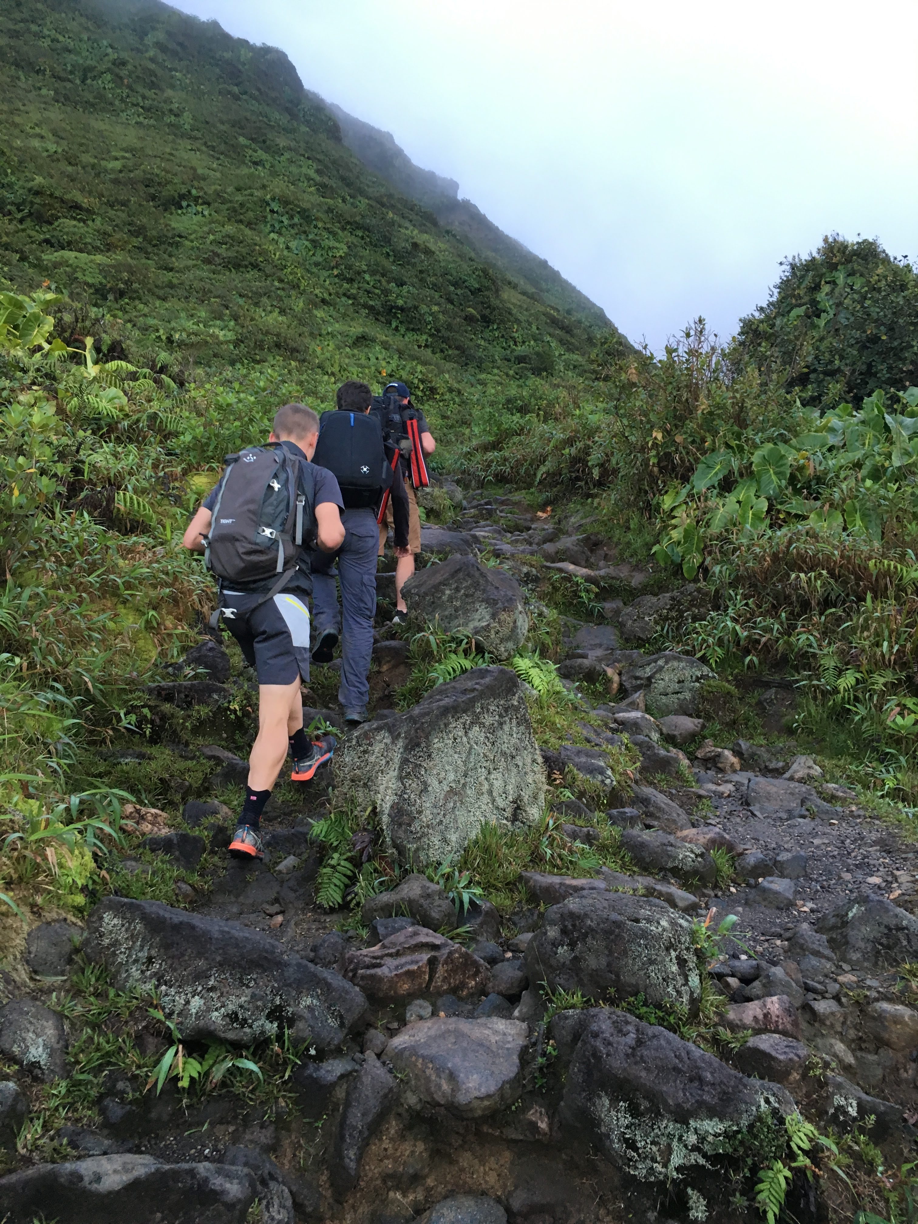 Allez banco ! Ça sera l’occasion de voir à quoi ressemblent les sentiers si terribles de cette île ! On se prépare donc pour se rendre au départ avec Benoît Girondel, à Basse Terre.