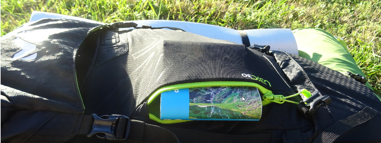 Le range-gourde est pratique et les sangles astucieuses permettent de porter une paire de bâtons.