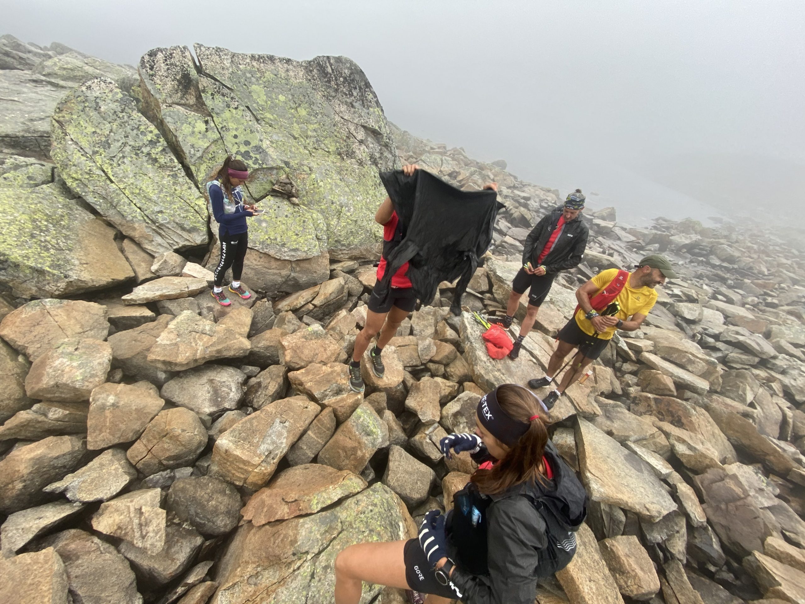 « Lundi 17h, il pleut, on est sous des bâches à 2300m d’altitude pour bivouaquer, il fait froid, on a fini le premier jour.